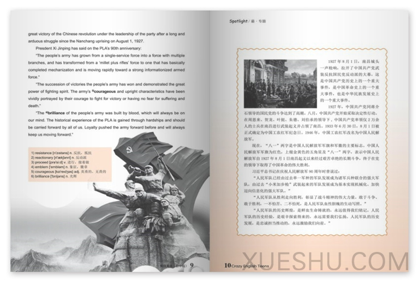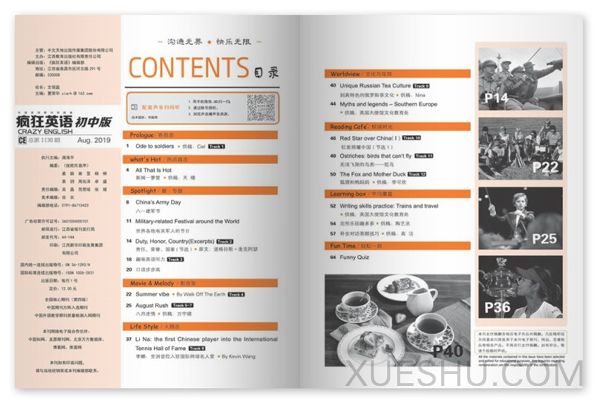 《瘋狂英語(yǔ)》(月刊)經(jīng)過(guò)多年的不懈努力,流行度高,大眾辨識(shí)度廣,創(chuàng)刊于1980年,開(kāi)拓了視野,帶給讀者富有生活特色的內(nèi)容。時(shí)尚有趣、兼顧課堂內(nèi)外、貼近生活,適讀人群:初中生有一定英語(yǔ)基礎(chǔ)的學(xué)習(xí)者、12-15歲初中生等等。