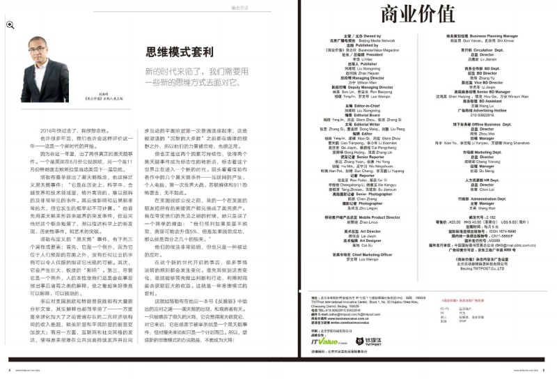 商業(yè)價值雜志是一個專注于商業(yè)領域的雜志,以發(fā)掘商業(yè)領域的價值與價值創(chuàng)造為核心,提供實用、科學、前沿的商業(yè)知識與經(jīng)驗,幫助企業(yè)家和商業(yè)界人士規(guī)避風險、把握機遇,創(chuàng)造更大的商業(yè)價值。