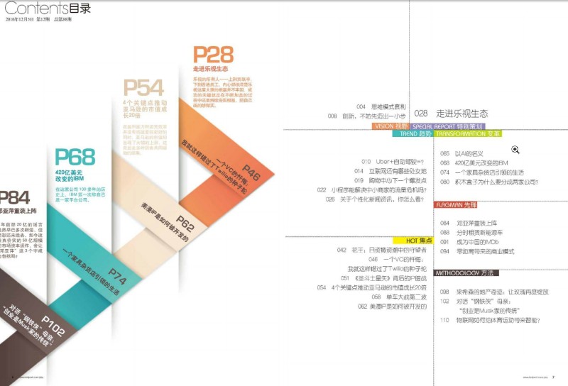 《商業(yè)價值》主要欄目:封面、編者的話、專欄、特別策劃、變量、寶貝健康、罷了、O2O論壇、創(chuàng)新潮流、焦點行業(yè)、先鋒、方法、商學院、態(tài)度、東張西望等。