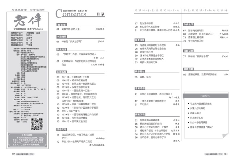 《老伴》主要欄目:本期話題、信息速遞、情感天地、長壽之鄉(xiāng)、快樂驛站、銀族廣角等。