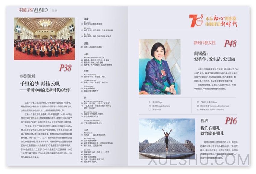 《中國女性》(月刊)經(jīng)過多年的不懈努力,流行度高,大眾辨識(shí)度廣,創(chuàng)刊于2001年,開拓了視野,帶給讀者富有生活特色的內(nèi)容。作為一本服務(wù)于精英女性的精品刊物,我們一直在探索與創(chuàng)新中前進(jìn),期待與你一路同行。