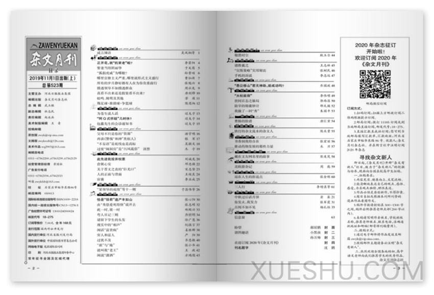 《雜文月刊》(半月刊)經過多年的不懈努力,流行度高,大眾辨識度廣,創(chuàng)刊于1985年,開拓了視野,帶給讀者富有生活特色的內容。幽默,乃其獨特風格;可讀、可信、可親,因而雅俗共賞,優(yōu)選雜文,好文共賞、思辨哲理,感悟人生、閑談幽默,會心一笑。