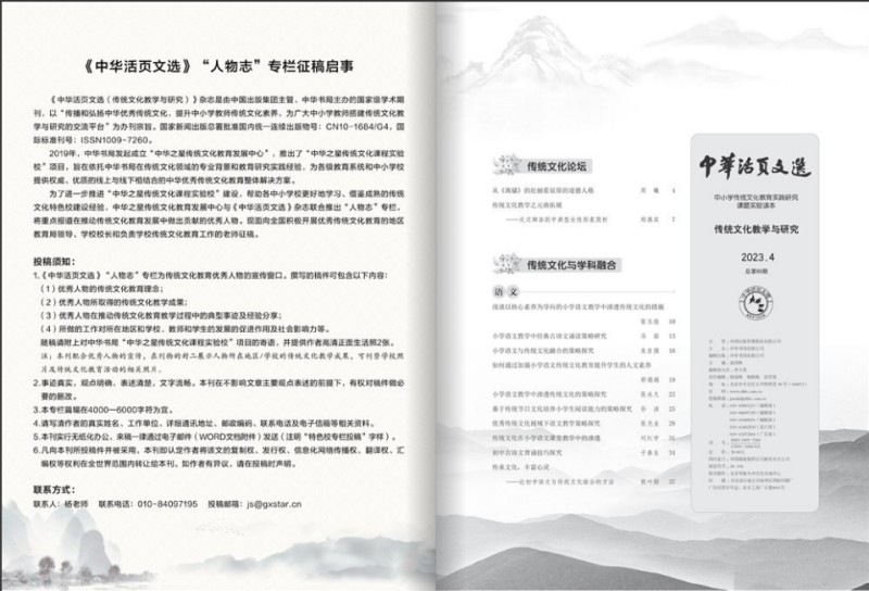 《中華活頁文選》雜志傳承創刊50多年來“文選”特色,以優美、正面、高品質的選文在中小學師生中具有良好口碑。中華國學板塊仰仗中華書局國學實力,形成了文本準確、注譯嚴謹、講解淺易的傳統。