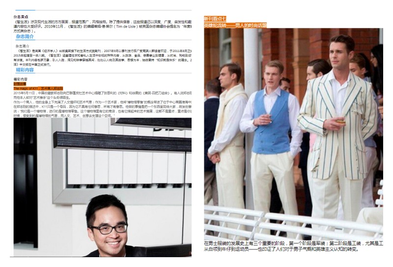 《智生活》主要欄目:Intelligence啟智、This season當(dāng)季、Places地界、Feature專題、Style格調(diào)、Culture文化。