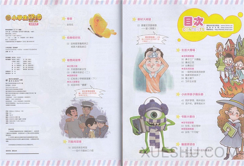 《世界兒童·小學生閱讀》主要欄目:經典小書閣、美文淘寶店、課文連連看、讀寫夢工廠、歡樂QQ堂、開心雙語園。