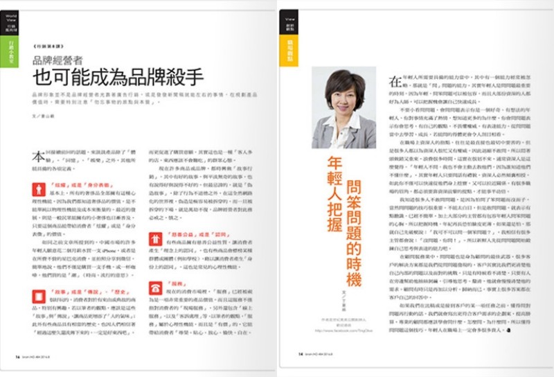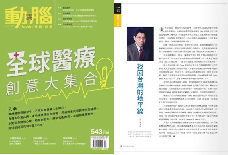 《動(dòng)腦》多元豐富的產(chǎn)品除雜志外,另有Brain.com數(shù)數(shù)位平臺(tái)、動(dòng)腦講座、及動(dòng)腦俱樂(lè)部、叢書(shū)出版、動(dòng)腦考察團(tuán)及廣告獎(jiǎng),滿(mǎn)足讀者各項(xiàng)需求。,廣告行銷(xiāo)媒體圈瞭望者的角色;讀者涵蓋臺(tái)、中、港、新、馬、美國(guó)等地華文廣告界。