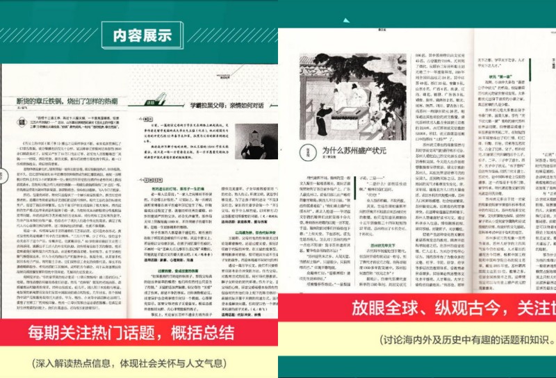 《最文摘》主要欄目:關注、成長、爭鳴、啟迪、人物、視野、繪本、聲音、故事、格言、智慧、雜文、意林、素材、演講、細節、讀點。
