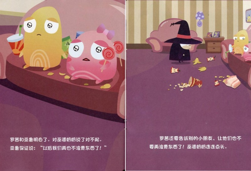 羅茜和亞魯明白了。對巫婆奶奶說了對不起。亞魯保障說:“以后 我們再也不浪費東西了!”羅茜還要告泝別的小朋友、讓他們也不要浪費東西了!巫婆奶奶連連點頭。