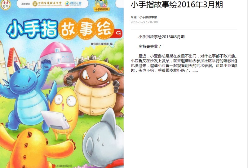 《小手指故事繪》雜志為月刊,出版于甘肅少年兒童出版社,讀者推薦:5-7歲兒童,是由五個小伙伴圓潤可愛,親和力十足,經歷了一個個有趣的故事。