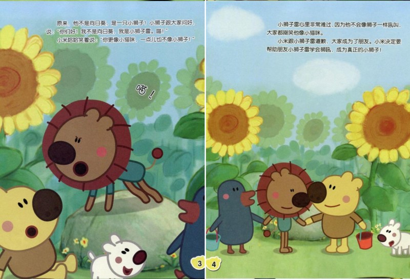 小獅子雷心里非常難過因為他不會像獅子- -樣吼叫,大家都嘲笑他像小貓咪。小米跟小獅子雷道歉,大家成為了朋友。小米決定要幫助朋友小獅子雷學會獅吼,成為真正的小獅子!在小池塘邊,小來找來青蛙當老師,青蛙站在荷葉上呱呱的說話,聲音洪亮。小獅子雷張開嘴巴。發出的聲音是:喵,青蛙一躍就跳進場池塘里。