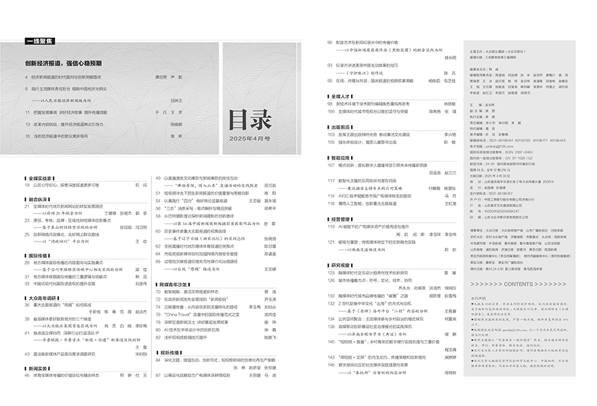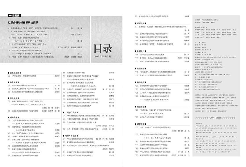 雜志內(nèi)容創(chuàng)新是媒體融合發(fā)展的核心。雜志關(guān)注如何通過內(nèi)容創(chuàng)新提升媒體的吸引力和影響力。一方面,要推動(dòng)內(nèi)容生產(chǎn)供給側(cè)結(jié)構(gòu)性改革,擴(kuò)大優(yōu)質(zhì)內(nèi)容產(chǎn)能,創(chuàng)新內(nèi)容表現(xiàn)形式,提升內(nèi)容傳播效果。另一方面,要積極探索“內(nèi)容+服務(wù)”的模式創(chuàng)新,使媒體不僅是主流輿論陣地,還是綜合服務(wù)平臺(tái)。技術(shù)是媒體融合發(fā)展的關(guān)鍵支撐。雜志強(qiáng)調(diào)利用5G、大數(shù)據(jù)、云計(jì)算、物聯(lián)網(wǎng)、區(qū)塊鏈、人工智能等信息技術(shù)革命成果,加強(qiáng)新技術(shù)在新聞傳播領(lǐng)域的前瞻性研究和應(yīng)用。通過技術(shù)創(chuàng)新應(yīng)用,推動(dòng)內(nèi)容原創(chuàng)、運(yùn)營(yíng)、風(fēng)控和聚合、分發(fā)等方面跨越式發(fā)展,形成“內(nèi)容+科技”雙輪驅(qū)動(dòng)、雙輪聯(lián)動(dòng)的模式。