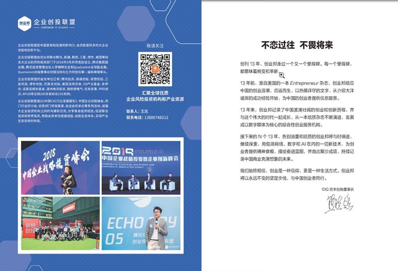 《創業邦》雜志創業邦為創業者提供高價值的資訊與服務,推動中國創新創業,旗下擁有媒體互動、創業孵化、融資服務等業務 。