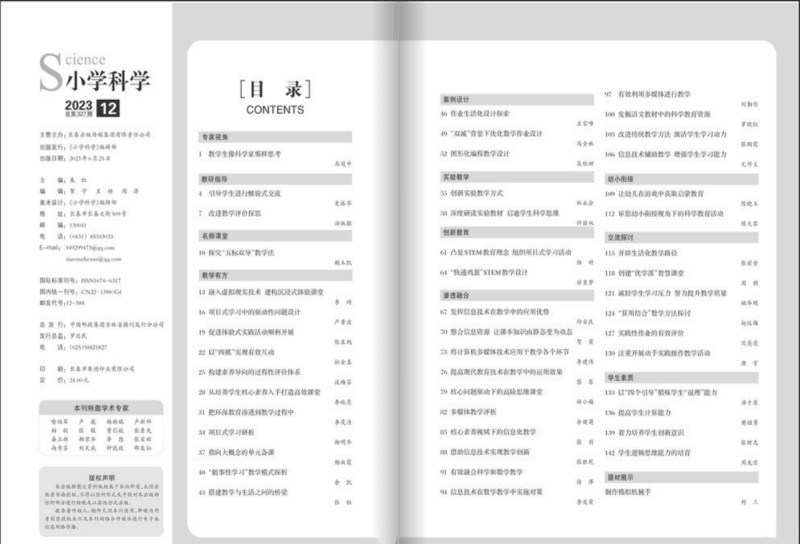 《小學(xué)科學(xué)》關(guān)注一線教育中的點(diǎn)滴智慧,著重反映教育教學(xué)工作者在改革過程中總結(jié)的新理論、新觀點(diǎn)、新體會(huì)和新經(jīng)驗(yàn),探索現(xiàn)代教育與新課程改革中的新思路、新特點(diǎn),同時(shí)為教育教學(xué)工作者提供“思想爭鳴、學(xué)術(shù)交流、經(jīng)驗(yàn)分享”的平臺(tái)。