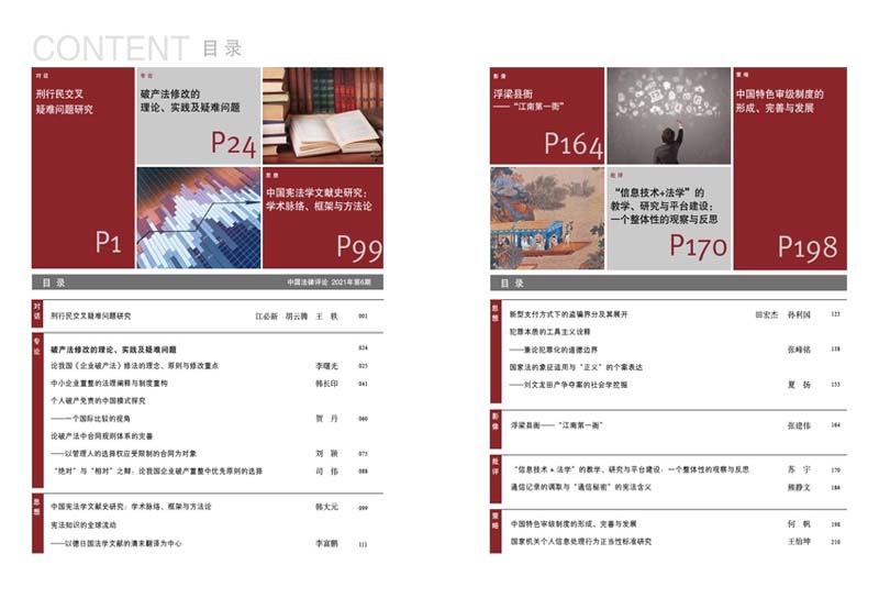 《中國法律評論》提供最新的法律信息以及成功的案例,使讀者更好地理解法學學科、掌握最新的法學思想、并了解相關法學領域的學術動態和實踐成果。該雜志將為廣大法學界人士提供一個了解法律和優化解決方案的平臺,為讀者提供獨立、精準、權威的法律信息服務,以鼓勵法律實踐的發展。