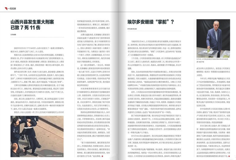 《中國新聞周刊》雜志各方面的新聞報道都力求突出新聞事件的深度解讀,同時為讀者提供具有前瞻性和思考性的報道和評論,是真正的高端、權威性的新聞雜志。