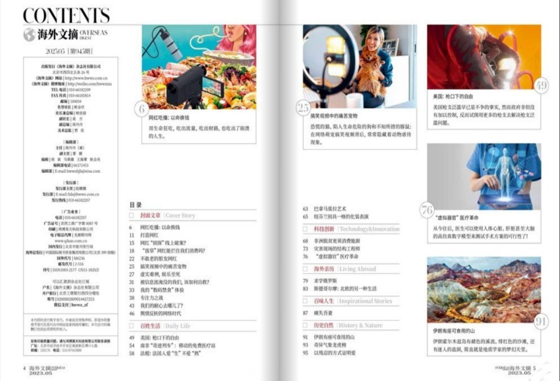 《海外文摘》是海外文化精品的薈萃,它突出一個(gè)“新”字,強(qiáng)調(diào)一個(gè)“外”字,體現(xiàn)一個(gè)”真“字,文章長(zhǎng)短適宜,內(nèi)容貼近現(xiàn)實(shí),貼近大眾生活,豐富有趣,新奇而不荒誕,優(yōu)美而不媚俗,高雅而不孤傲。文字凝練、圖片精美,知識(shí)性、趣味性兼?zhèn)洌强释鲩L(zhǎng)知識(shí)、開(kāi)闊眼界、愉悅心情、追求成功人士的良師益友,讀者可以在較短的時(shí)間內(nèi),吸取更多的知識(shí)和樂(lè)趣。