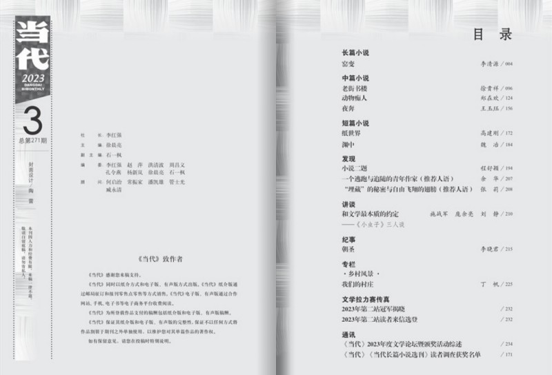 《當(dāng)代》主要欄目:中篇小說、長篇小說、講讀、往事.166人物、紀(jì)事、文學(xué)拉力賽傳真等。