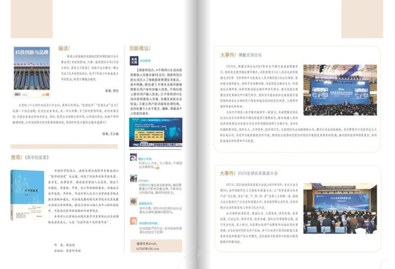 《科技創(chuàng)新與品牌》主要欄目:院士天地、封面報(bào)道、科協(xié)動(dòng)態(tài)、第一看點(diǎn)、創(chuàng)新成果、人物志等。