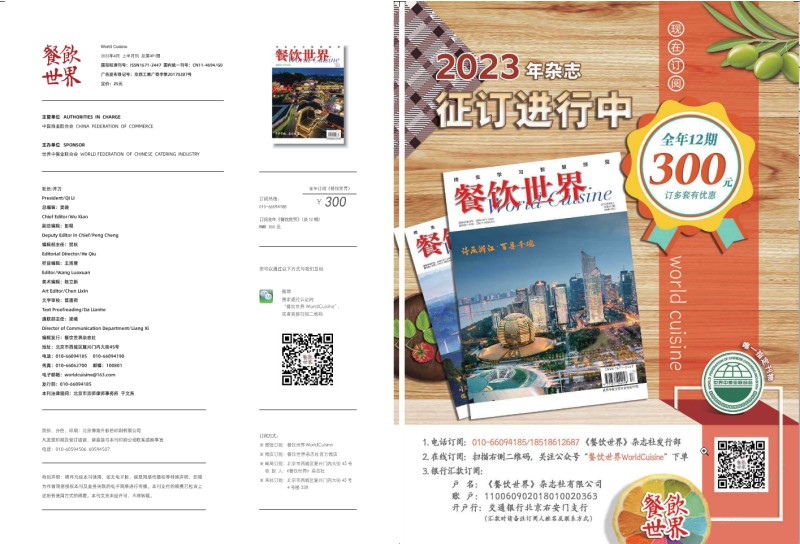 《餐飲世界》雜志為餐飲經營管理者和廣大廚師傾力打造“餐飲前沿”和“時尚廚藝”兩大板塊,各設若干欄目,供您閱讀或投稿選擇。“餐飲前沿”傾情關注餐飲業最新動態,獨家報道餐飲業熱點問題,全面交流經營管理經驗,獨特的視角,鮮活的觀點為您展現中國餐飲業前沿信息。“時尚廚藝”大師潑墨、名廚點彩,多彩的各地美食,一道道經典美味展現在您的面前,讓您在識書、聞香中學藝,在廚門五味的世界里縱橫馳騁。