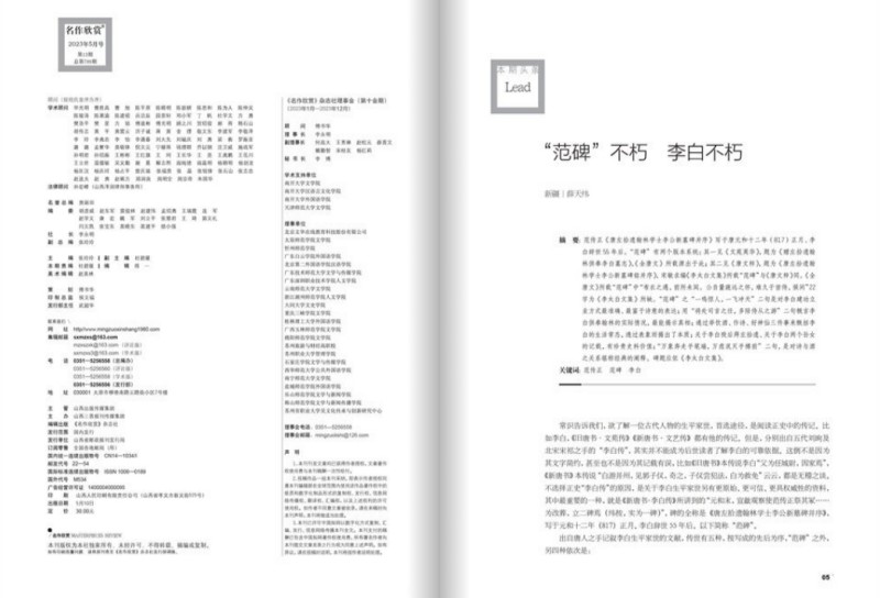 《名作欣賞》(月刊)經過多年的不懈努力,流行度高,大眾辨識度廣,創刊于1980年,開拓了視野,帶給讀者富有生活特色的內容。全國以鑒賞中外古今文學名著為內容的大型期刊,適讀人群:古代、近代、人文、傳統、歷史、文化、28-40歲成年讀者等等。